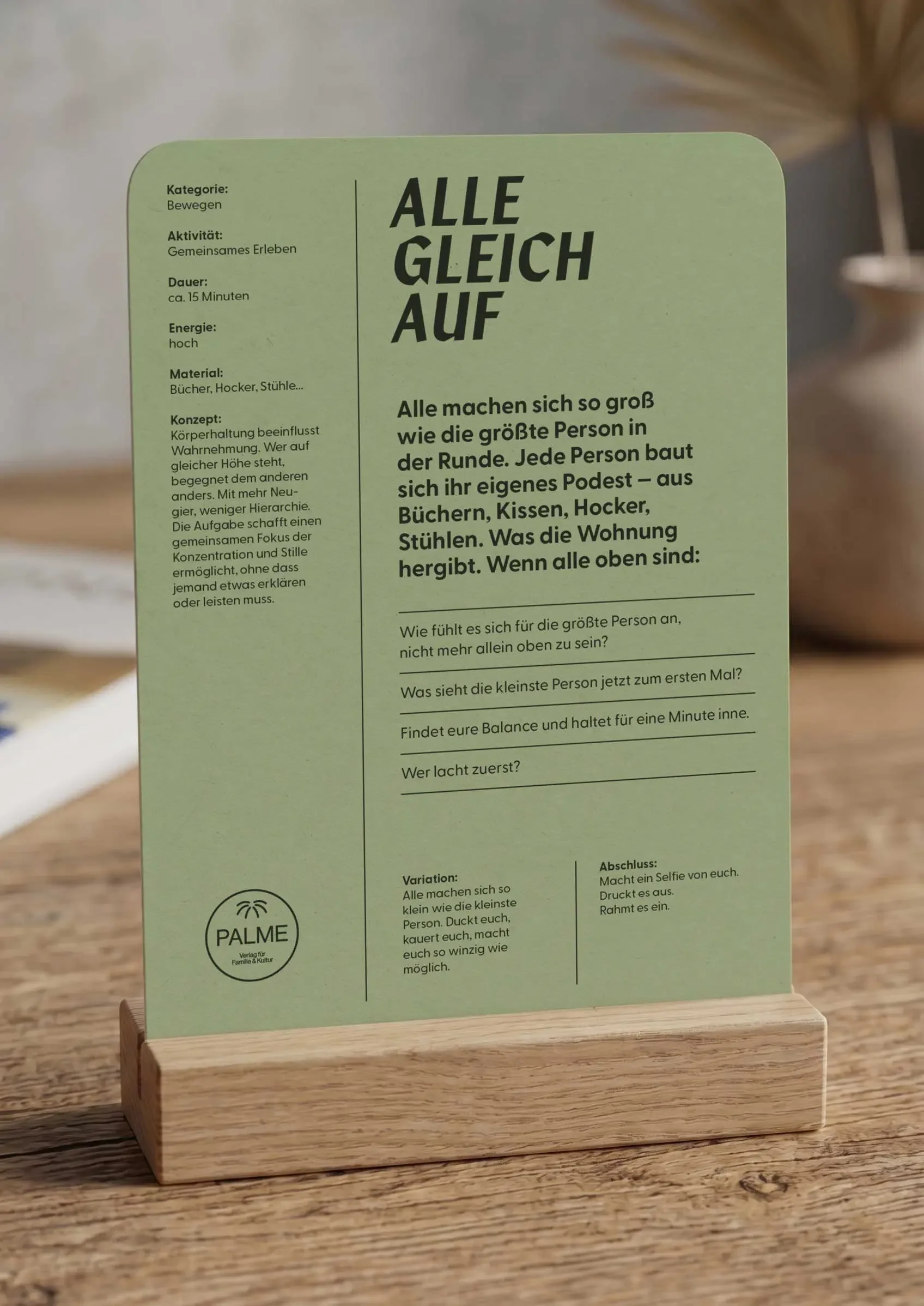 Entwickelt von Julia Hofko, Therapeutin, und Markus Hofko, Designer, gemeinsam mit unseren Kindern. 40 Karten im A5-Format, hochwertig gestaltet, mit Holzaufsteller aus Buchenholz.